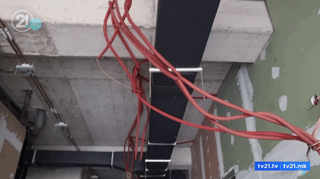 Како што можете да видите, болницата, чија изградба започна пред 40 години, е обоена однадвор, а речиси завршена одвнатре. Електричните кабли, системот за вентилација, водоснабдувањето, системот за греење и гипс-картонските плочи се инсталирани и подготвени за боење“, вели репортерката на ТВ21.