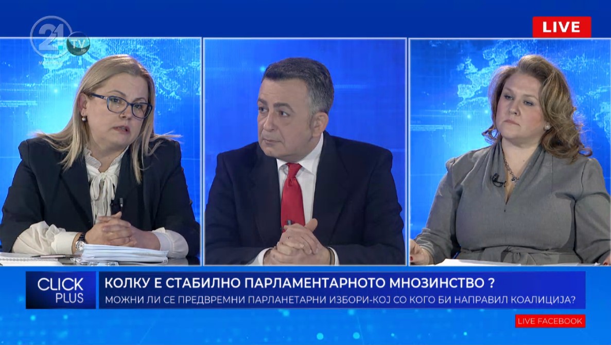 Славјанка Петровска, пратеничката од редовите на СДСМ, вечерва во „Клик Плус“ на ТВ21 дебатираше со пратеничката од редовите на ВМРО-ДПМНЕ, Дафина Стојановска.
