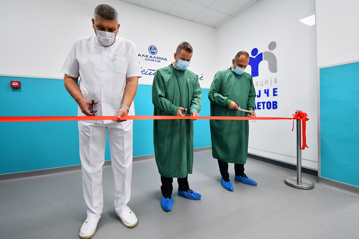 Просторот од над 350м2, кој скоро три децении стоел незавршен, денес официјално и свечено беше предаден во употреба со строго почитување на сите здравствени протоколи и заштини мерки од страна на Министерот за здравство, Проф. д-р Венко Филипче, Генералниот директор и Претседател на Управен одбор на „Алкалоид“, г. Живко Мукаетов и директорот на болницата, д-р Диме Коцев.