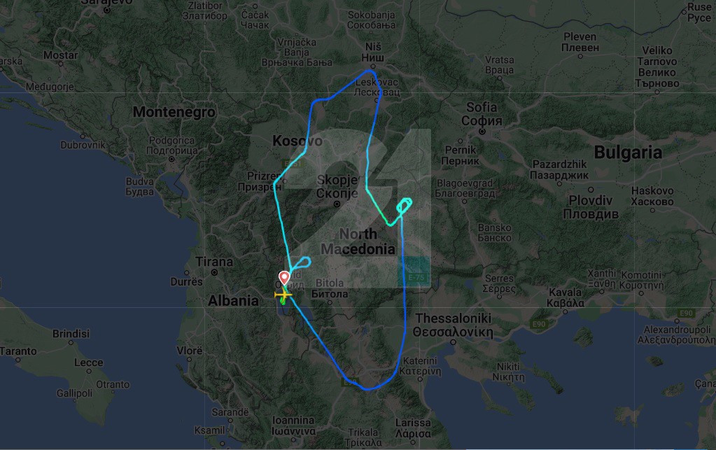 Но, набргу пред Ниш, Србија авионот започнува да ја намалува вистината и брзината на движење, врти во десно и се враќа кон Македонија.