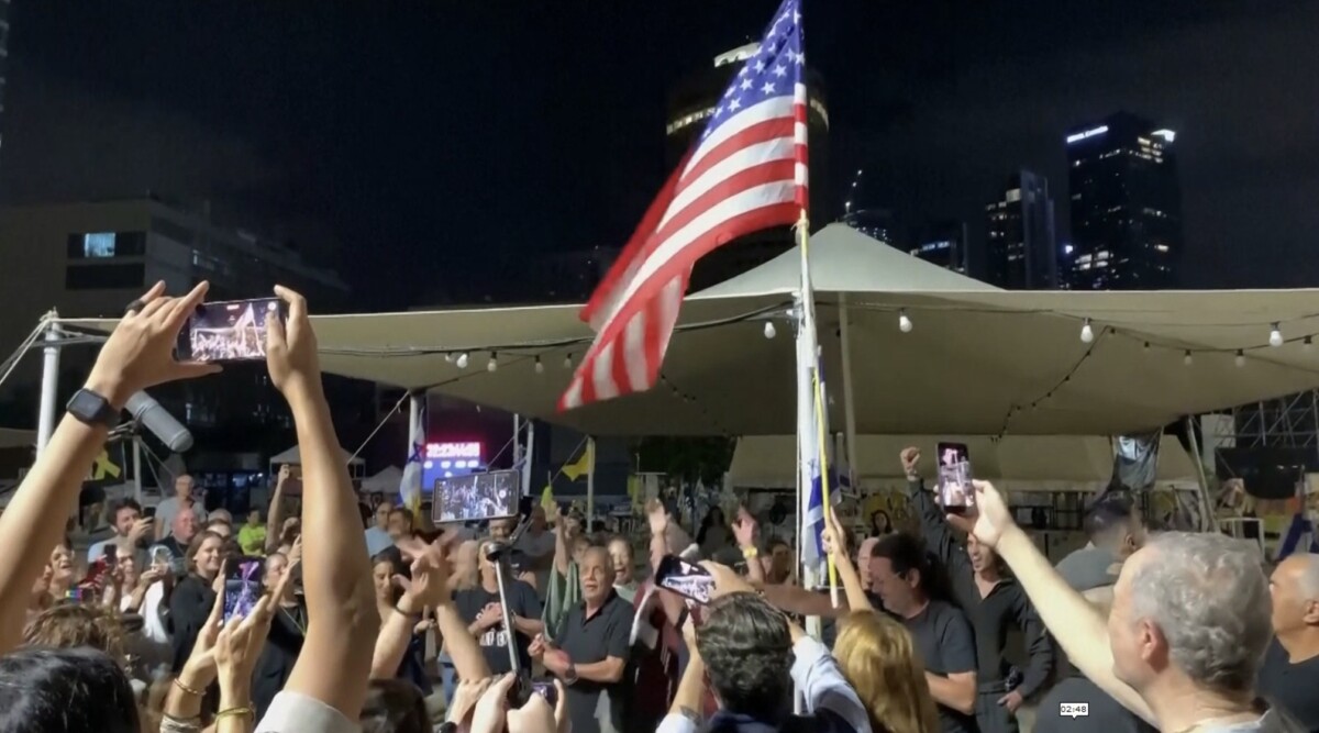 Радосни семејства на заложниците се собраа на плоштадот во центарот на Тел Авив за да го прослават постигнатиот договор.