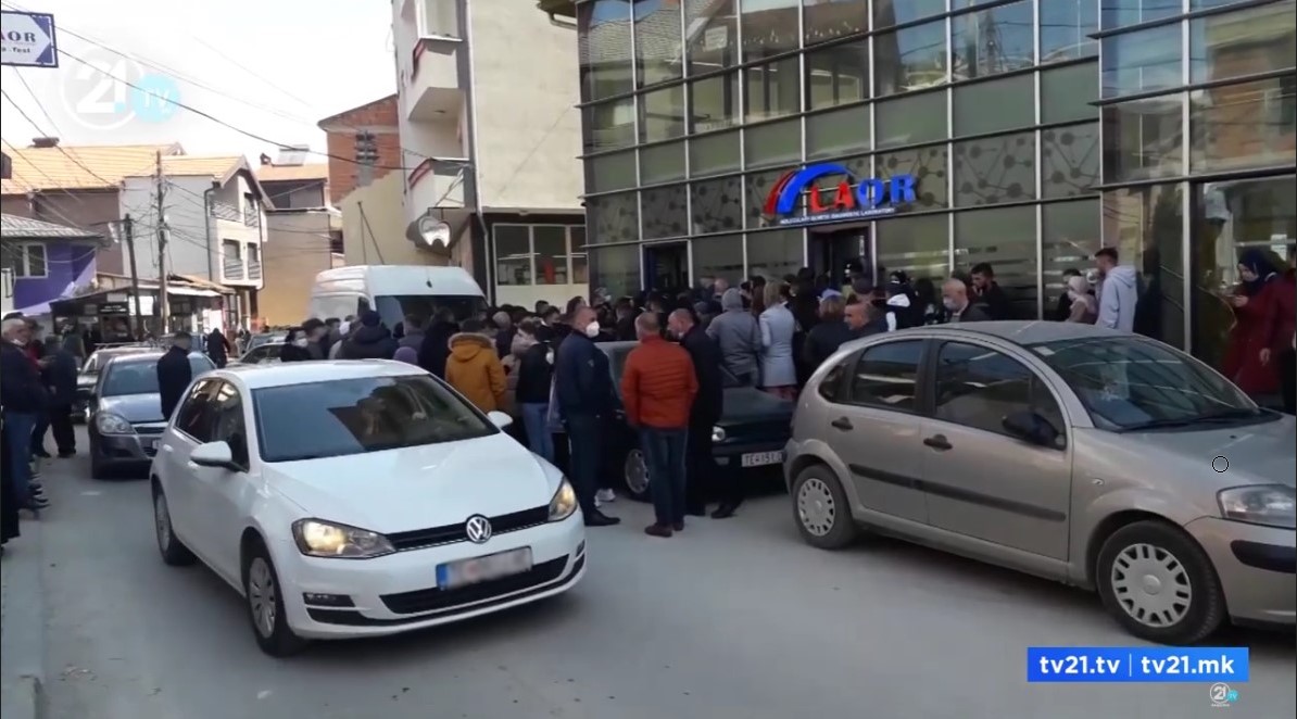 „И додека Владата и останатите институции преземаат мерки за спречување на зголемување на бројот на новозаразени, во Тетово пред една приватна лабораторија сите овие граѓаните кои се зад мене чекаат на ред за да направат ковид-тест“, истакна репортерот на ТВ21.