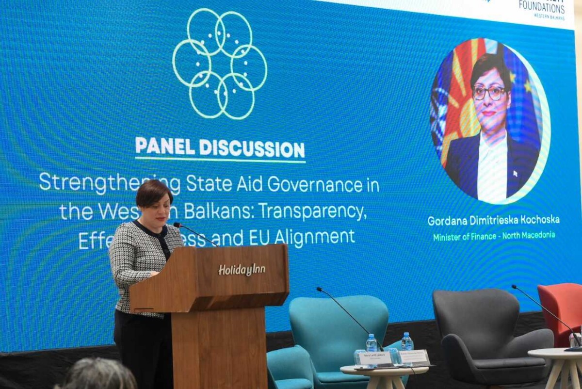 Државната помош мора да биде јасно насочена, економски оправдана и во функција на конкурентноста и одржливиот раст, порача министерката за финансии, Гордана Димитриеска-Кочоска, на регионалната панел дискусија на тема „Зајакнување на управувањето со државната помош во Западен Балкан: транспарентност, ефективност и усогласување со ЕУ„ кој се одржа во организација на „Фајнанс тинк“.