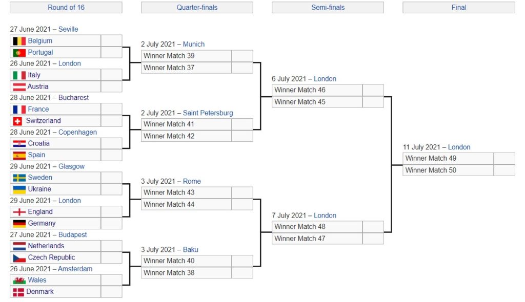 Интересна ќе биде и пресметката меѓу Хрватска и Шпанија која ќе се игра во Копенхаген. Победникот ќе игра со подобриот од дуелот Франција – Швајцарија. Исто така еден од поинтересните пресметки во следната фаза е дуелот меѓу Белгија и Португалија кој ќе се игра во Севиља, а потоа подобриот од овој меч ќе го чека подобриот од пресметката Италија – Австрија.