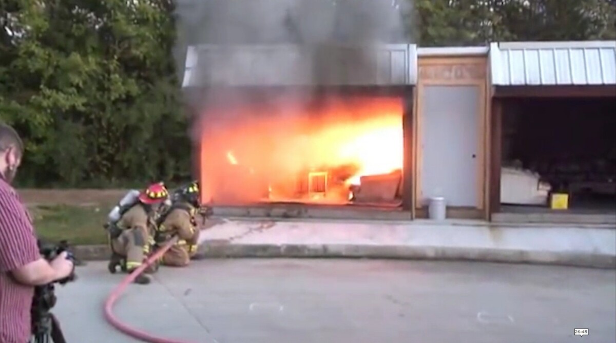 „Во моментов се гледа дека запален е само креветот и ќе видиме тука дека за неполни три минути ќе имаме целосно палење на просторијата каде што е највисокиот стадиум на пожарот“, вели Бобан Трпковски.