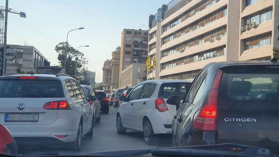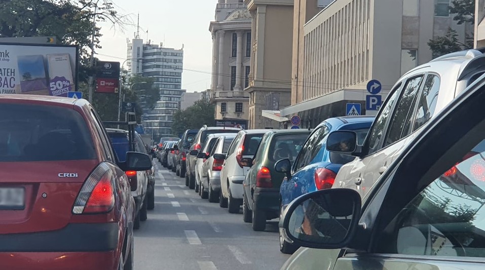 Голема гужва со колони од возила попладнево во центарот на Скопје.