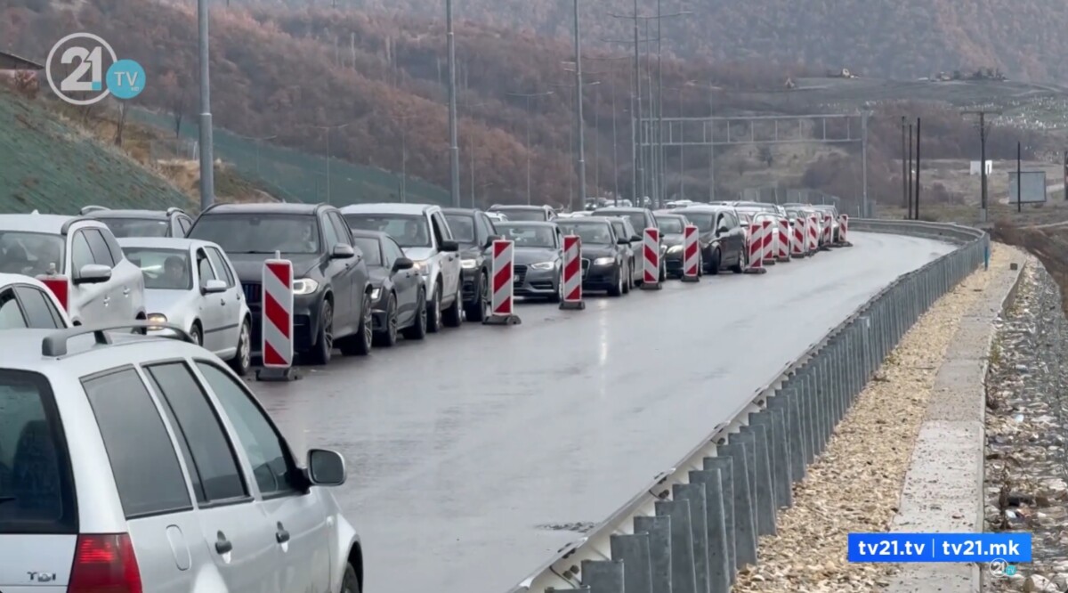 „Се наоѓаме во неутралната зона на граничниот премин меѓу Македонија и Косово, каде вообичаено во текот на викендите има долги колони. По еден час чекање на излезот од Македонија, исто беше и во другата зона, имаше колона, каде граѓаните планирале од Косово да дојдат во Македонија за да го поминат овој викенд“, вели репортерот на ТВ21.