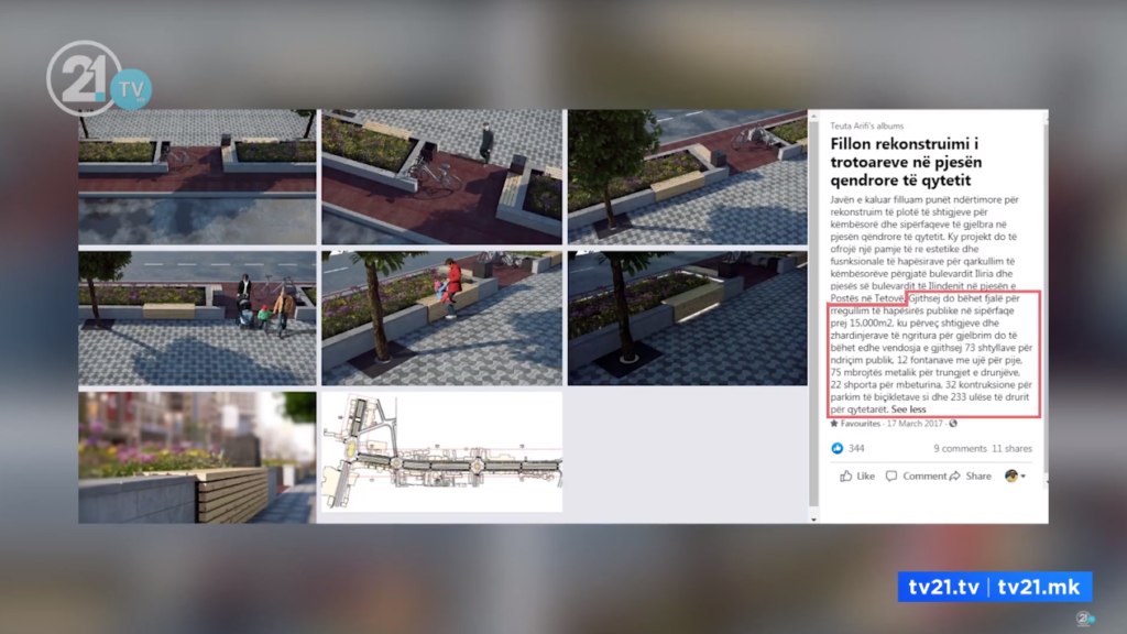 На 6 мај, градоначалничката на Тетово, Теута Арифи на својот профил на Фејсбук, најави дека на булеварот „Илирија“ почнале да се поставуваат клупи и канти за отпадоци. Според Арифи, со поставувањето на осветлувањето и паркинг-места за велосипеди, граѓаните ќе добијат модерна зона во центарот на градот. Но, она што го привлекува вниманието е тоа што градоначалничката воопшто не ги спомнува фонтаните со вода за пиење и металните штитници за стеблата на дрвјата, кои самата ги најавуваше како дел од проектот за булеварот.