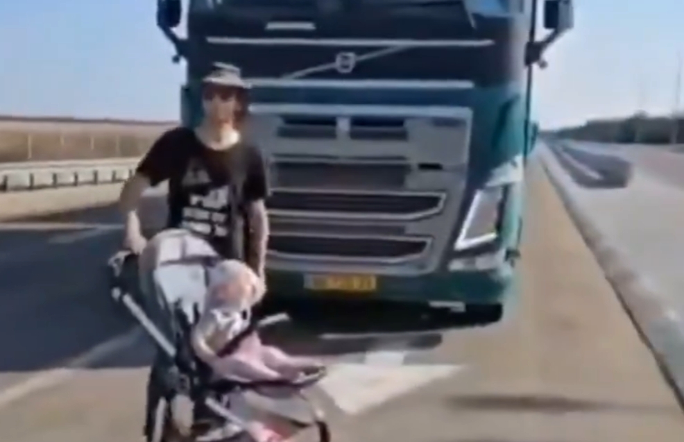 Israeli activist group deploys BABY on highway to block path of aid trucks going into Gaza