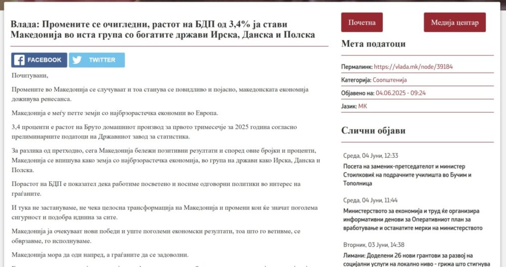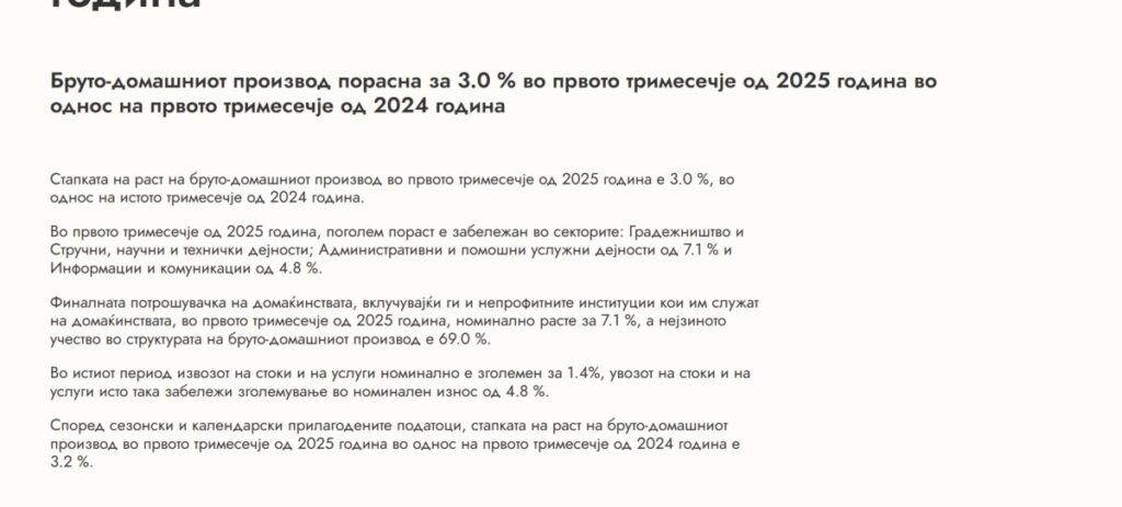Два дена хаотични податоци за тоа колку пораснал бруто домашниот производ во првите три месеци од годинава. Вчера и денеска, според Владата растот е 3,4 насто. Според Државниот завод за статистика растот е 3 насто, но и 3,2 со сезонски и календарски прилагодени податоци. Сепак, денеска дилемата ја разреши министерката за финансии.