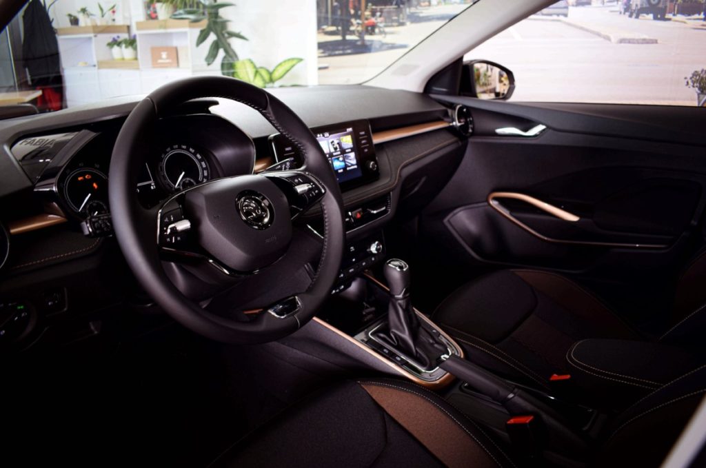 Внатрешноста на FABIA воспоставува совршена рамнотежа помеѓу емотивноста и ергономијата. Визуелно, се карактеризира со централен инфозабавен систем до 9,2 инчи. Покрај најсовремените системи за инфозабава, кај FABIA за прв пат може да се вгради и 10,25-инчна дигитална инструмент табла. Карактеристиките за комфор, кои вообичаено се наоѓаат во возилата од повисоко ниво, како што се греење на ветробранско стакло и греење на волан, се дополнителни опции што го имаат своето деби кај FABIA. Останати детали во внатрешноста кои претставуваат новост кај FABIA е амбиенталното осветлување и за прв пат, двозонска автоматска клима.