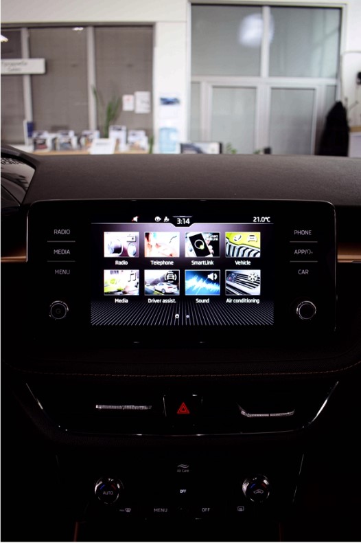 ŠKODA ја опреми новата FABIA со инфозабавни системи кои имаат екрани до 9,2 инчи. Малиот автомобил добива пристап до интернет благодарение на вградениот eSIM, што во исто време овозможува пристап до интернет радио. Паметните телефони можат да се поврзат со автомобилот преку безжична SmartLink конекција без потреба од кабел и индуктивно да се полнат во Phone Box. Amundsen, врвниот систем за инфозабава може да се управува со контрола на гестови и со помош на дигиталниот асистент Laura.