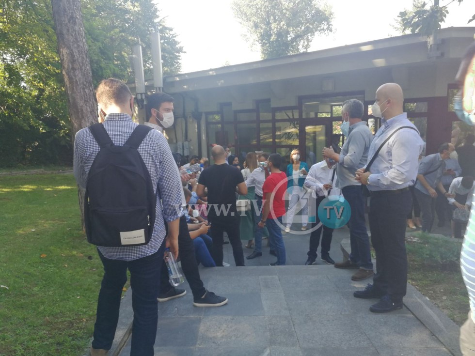 Лидерот на ВМРО-ДПМНЕ, Христијан Мицкоски денеска со сите пратеници пристигна во Вила Водно на итен состанок со Претседателот на државата, Стево Пендаровски.