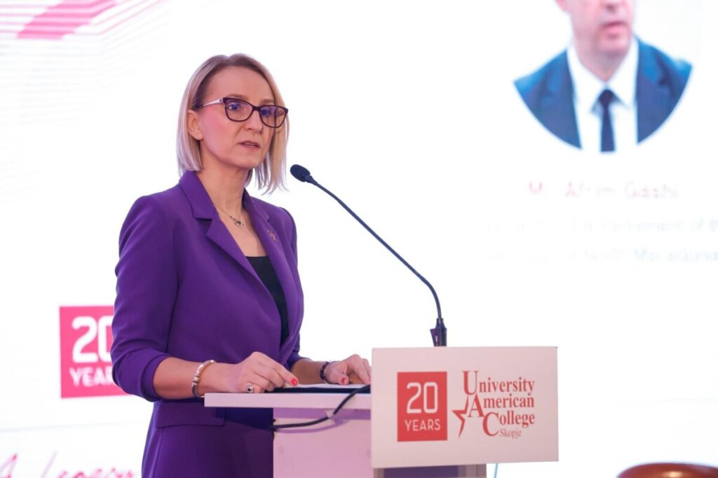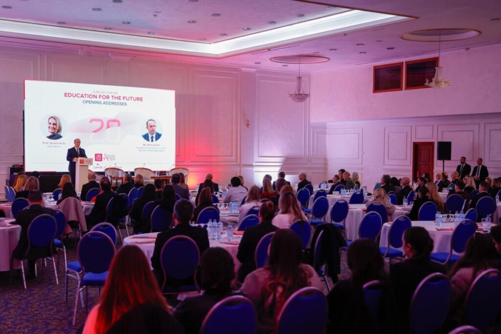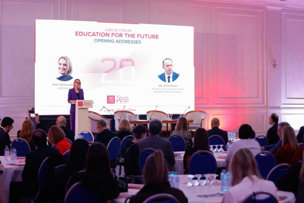 Форумот го отвори Ректорката на УАКС, проф. д-р Венера Крлиу, која во своето свечено обраќање се осврна на значајниот јубилеј на Универзитетот и ја нагласи важноста на образованието како двигател на општеството и централната улога на универзитетите во креирањето на идните генерации лидери: „Изминатите две децении, УАКС се позиционираше како лидер во приватното високо образование во земјата. Нашиот пристап, втемелен во иновативна методологија за работа, интернационализација и фокус на развојот на студентите, им овозможи на илјадници млади луѓе низ годините да се позиционираат како лидери во бизнисот, дипломатијата, јавниот сектор, технологијата и граѓанското општество.” – истакна ректорката Крлиу.