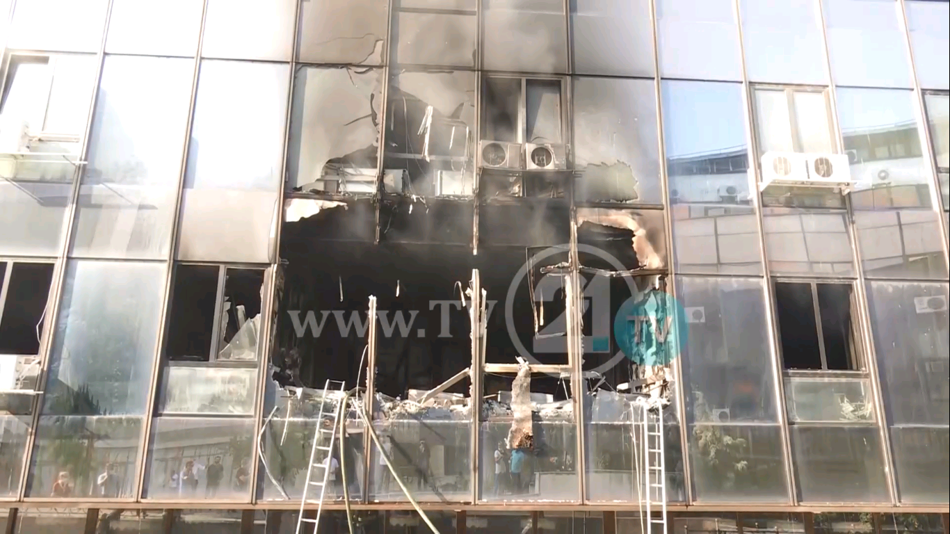 „Во 7 часот утринава пожар ги зафати просториите на информативната агенција МИА и Државниот инспекторат за животна средина и просторно планирање. Можете да видите од нашите снимки дека просториите се целосно уништени. Тоа што е позитивно е дека просториите на Секретаријатот за европски прашања кои се близу, не биле зафатени од пожарот“, јавува репортерот на ТВ21.