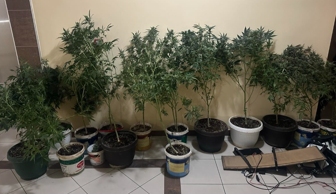 При извршен претрес во неговиот дом, по претходно добиена судска наредба, пронајдени и одземени се 41 саксии со насади од канабис, прашкаста материја, марихуана, капсули, рефлектори, канти за одгледување на растенијата итн.