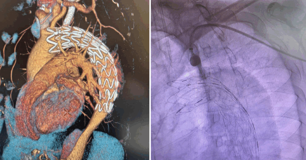 Во Клиничката болница „Аџибадем Систина“ првпат во Македонија беше изведена комплексна ендоваскуларна процедура на торакалната аорта – ТЕВАР со т.н. in situ фенестрација за левата потклучна артерија кај пациент со постдисекциска аневризма на десцендентната торакална аорта.