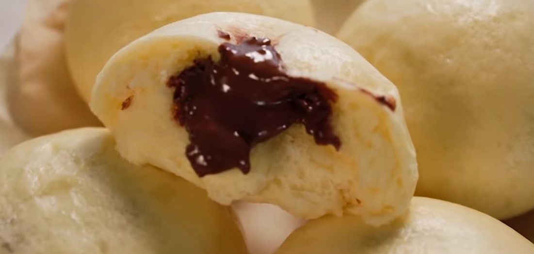 Со лажица се зема тестото, се распоредува на дланка и се додава една коцка чоколадо или една лажичка чоколаден намаз. Направете топка.
