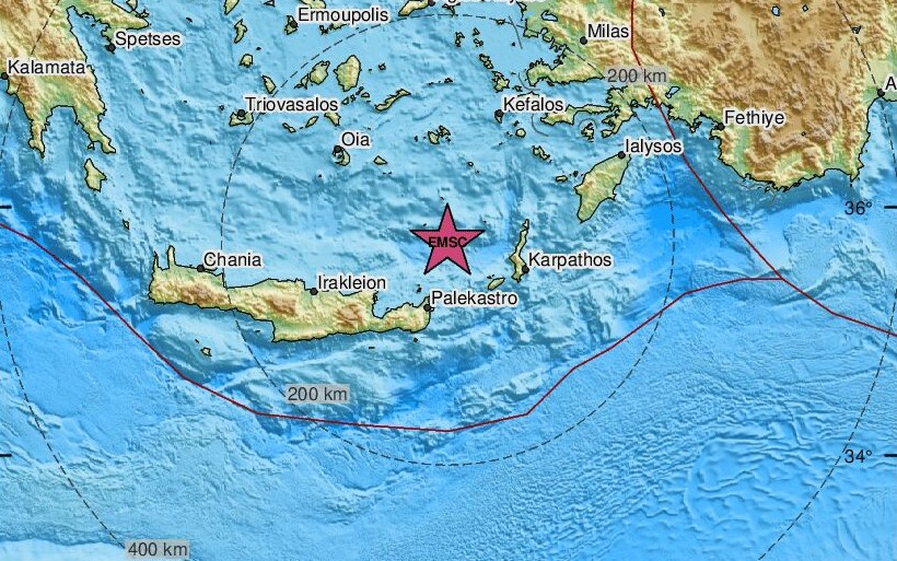 Во морскиот дел меѓу островите Касос и Крит, час и половина по полноќ беше регистриран земјотрес со јачина од 5,5 степени, што бил почувствуван во повеќе делови на земјата.