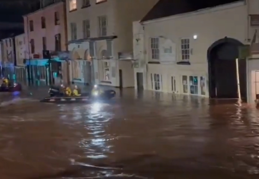 Storm Claudia dumped a month’s worth of rain in just 24 hours, sending the River Monnow to its highest level ever and drowning Monmouth under up to three feet of water.