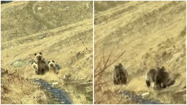 На Фејсбук страницата на Националниот парк Шар Планина е објавено видео каде се гледа како поголема кафеава мечка се шета со своите две малечки мечиња.