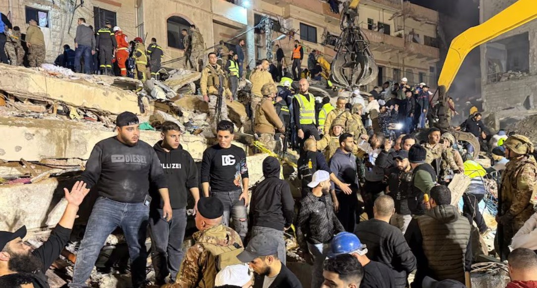 Десетици луѓе се собрале околу урнатините на зградата, што ја принудило либанската полиција да пука во воздух, пренесува АП.