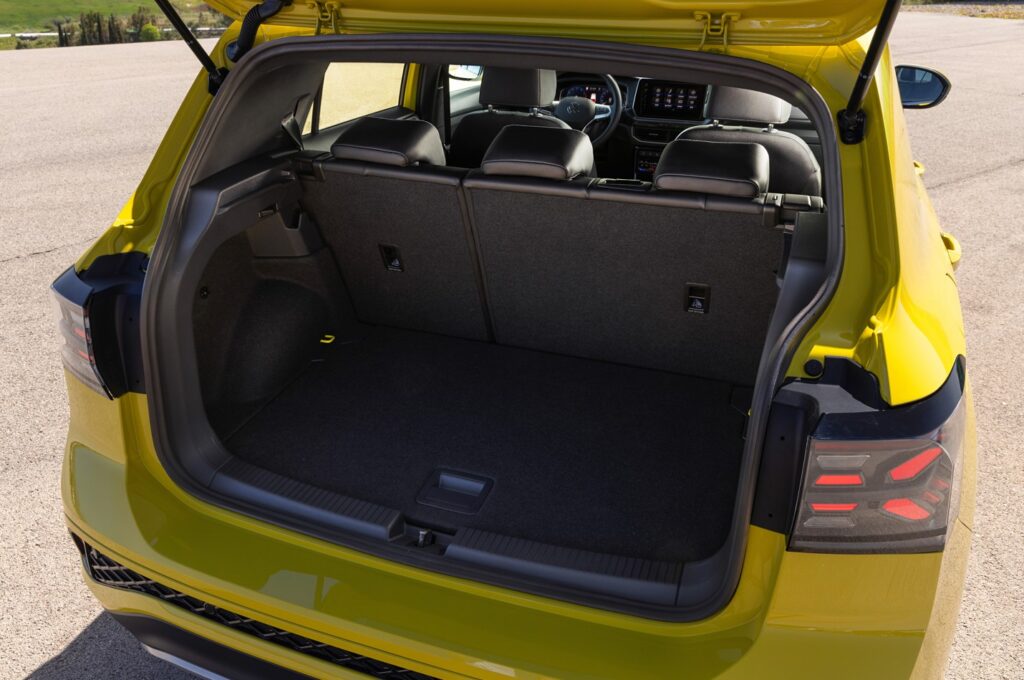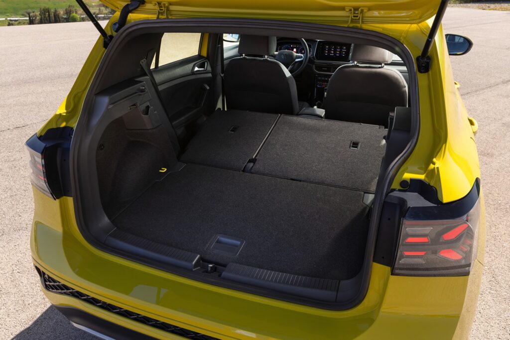 Импресионира со докажаниот оперативен концепт, добро уредениот простор за најмногу пет лица, задната клупа која може надолжно да се помести за 140 mm и исклучително флексибилниот багажен простор. Кога сите седишта се зафатени, T-Cross нуди капацитет на багажниот простор од 385 до 455 литри кога е натоварен до висината на задната клупа. Кога задното седиште на клупата е преклопено (поделено 60:40), ова создава рамна товарна површина со простор до 1.281 литри (натоварено до висината на потпирачите за грб на предните седишта).