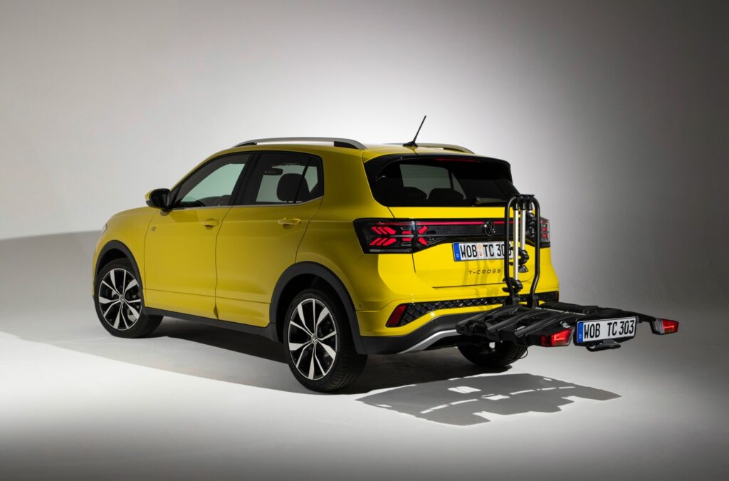 Volkswagen, исто така, го зголеми оптоварувањето на кровните носачи на T-Cross за значителна разлика: од 55 на 75 kg. Овие дополнителни 20 kg го зголемуваат максималното оптоварување што може да делува вертикално на опционалната демонтажна влечна кука. Затоа, новиот T-Cross нуди поголем капацитет за влечење тешка приколка. Во исто време, се зголемува максималната дозволена тежина на велосипедите што може да се превезуваат на носач поставен на влечната кука – нешто што е особено важно за транспорт на е-велосипеди.