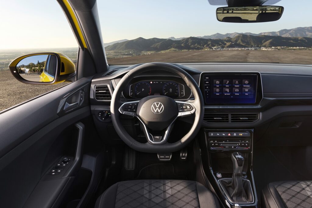 Нова генерација на инфозабавниот систем и висококвалитетен ентериер. Централниот елемент во внатрешноста на новиот T-Cross е самостојниот инфозабавен дисплеј. Стандардниот екран на допир мери 8 инчи (20,3 см) преку дијагоналата; врвната верзија има 9,2-инчен дисплеј со дијагонала од 23,4 cm. Дополнително, сите верзии на пет седишта со четири врати сега стандардно ќе бидат опремени со дигитални инструменти. Инструмент таблата во T-Cross, исто така, претрпе целосен редизајн: како и кај поголемите модели на VW, инструмент таблата се карактеризира со меко обложени и значително поквалитетни површински материјали. Истото важи и за облогите на предните врати на верзиите Style и R-Line. Стандардно има рачен систем за климатизација, а како опција е достапен автоматскиот клима уред Air Care Climatronic со лизгачи на допир со заднинско осветлување.