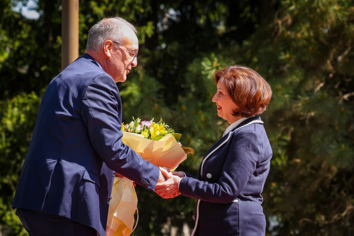 Претседателката Гордана Сиљановска-Давкова на церемонија со највисоки државни и воени почести го пречека швајцарскиот претседател Ги Пармелан, кој денеска престојува во официјална посета на земјава.