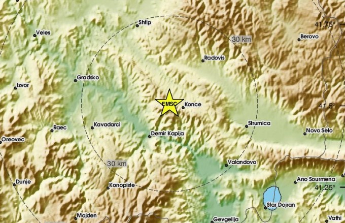 Земјотрес со јачина од 3,4 степени според Рихтеровата скала, го погоди јужниот дел на Македонија, во близина на Демир Капија.